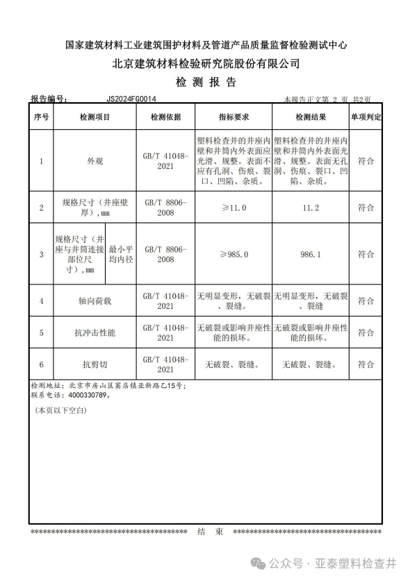 Стандарт GB/T 41408-2021 «Пластиковые инспекционные камеры для городской канализации» применяется к проектированию, строительству и техническому обслуживанию пластиковых инспекционных камер канализации, установленных на глубине не более 8 метров в пределах городских дорог, общественных зданий, жилых зон, промышленных объектов и аналогичных мест, где возможен доступ для технического обслуживания. Эти камеры рассчитаны на срок службы более 50 лет и обладают холодостойкостью до -40 °C.
